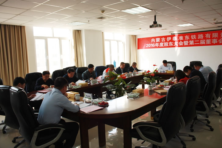近期,伊泰准东铁路公司在呼和浩特召开了第二届董事会第三次会议和2016年度股东大会,乐投平台作为伊泰准东铁路公司的国有股东,为更好地履行出资人职责,公司派出韩国信副总经理参加了此次董事会和股东会。
