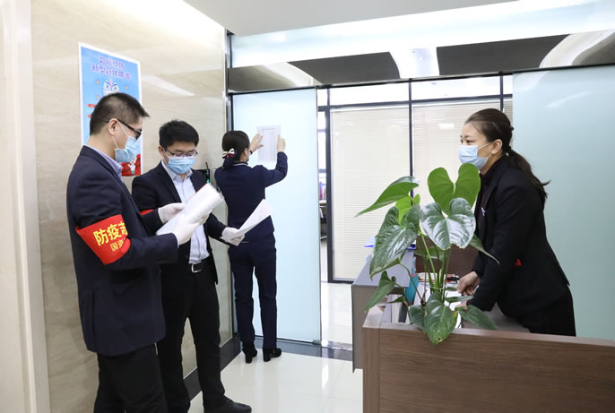 2月27日,在公司各处工作场所,流动的“防疫志愿者”红袖章格外吸引注意力,他们正在开展体温抽检、工作场所消毒巡查、电梯按钮消毒检查、废旧口罩回收监督等工作,为加强疫情防控担当尽责,为公司有序复工提供安全保障。