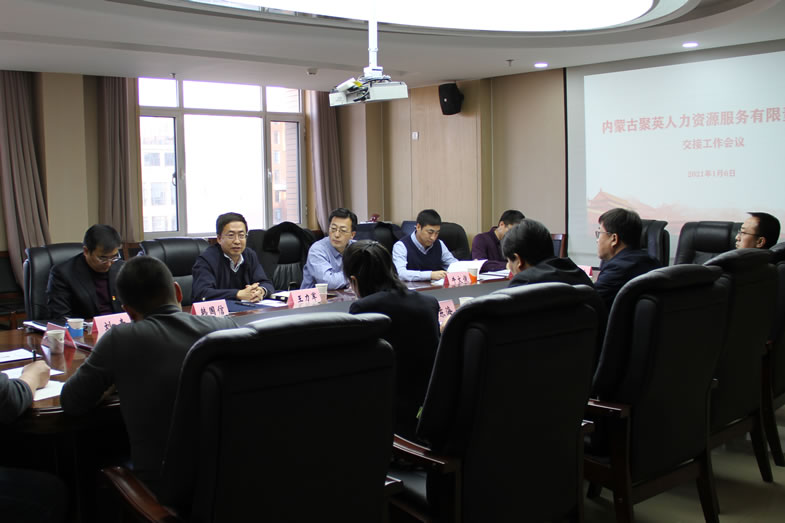 1月6日,在自治区国资委的大力支持下,乐投平台与自治区人力资源公共服务中心召开内蒙古聚英人力资源服务有限责任公司交接工作会议。自治区国资委资本运营与收益管理处处长张世宏、自治区人力资源公共服务中心主任谢遵国、乐投平台党总支书记、董事长王力军出席会议并讲话,自治区人力资源公共服务中心、乐投平台、聚英人力资源公司相关人员参加会议,会议由乐投平台总经理牛文俊主持。