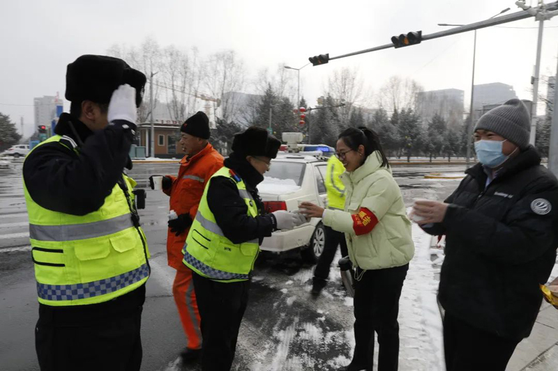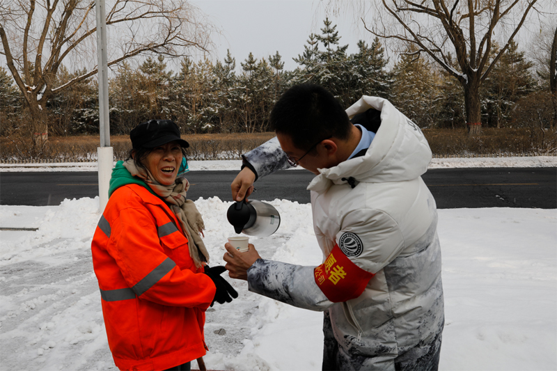 2月9日,2023年的初雪悄然而至,雪中的青城银装素裹,寒意阵阵。乐投平台第一、二党支部联合开展支部共建,为附近清理积雪的环卫工人、维护秩序的交通警察送上春天的第一杯奶茶,让这个春天多了一份暖意。